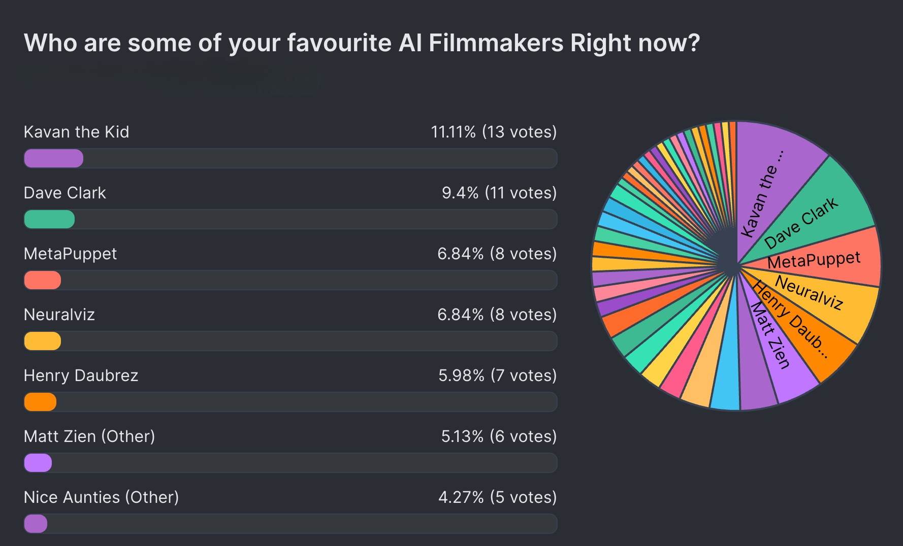 You also find dozens of names that received one or two votes. Filmmakers and studios who might not yet have a viral film, but whose experiments often stop you mid-scroll.
